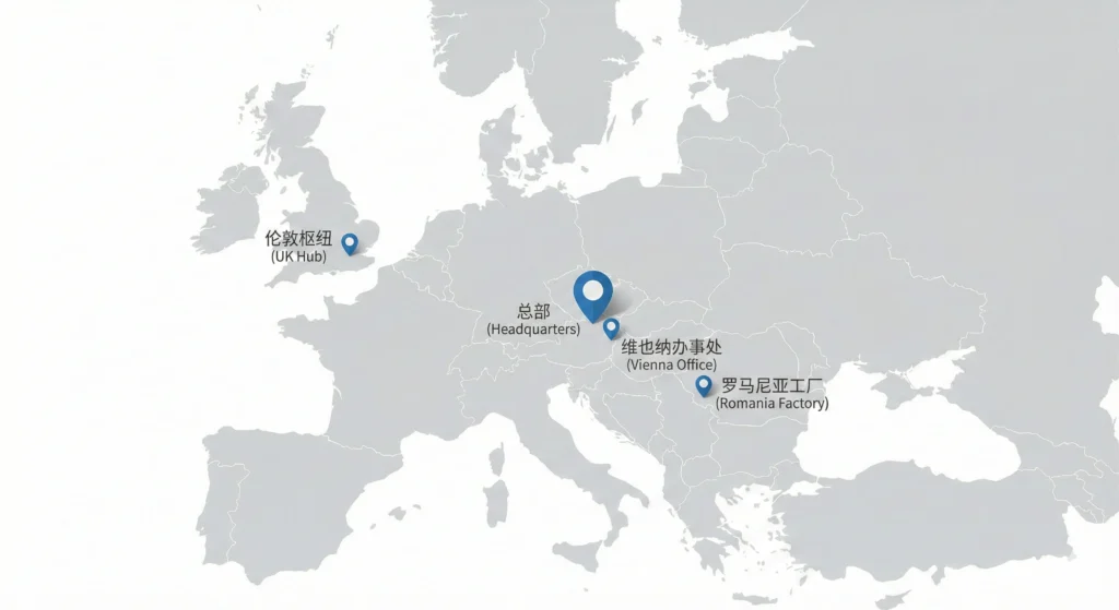 Our headquarters in Laa an der Thaya (Austria) serves as the central hub for Central Europe. Complemented by our office in Vienna and active logistics hubs in the UK (London) and Romania (Timisoara), we guarantee seamless operations and direct access to major transport corridors.